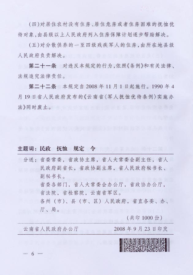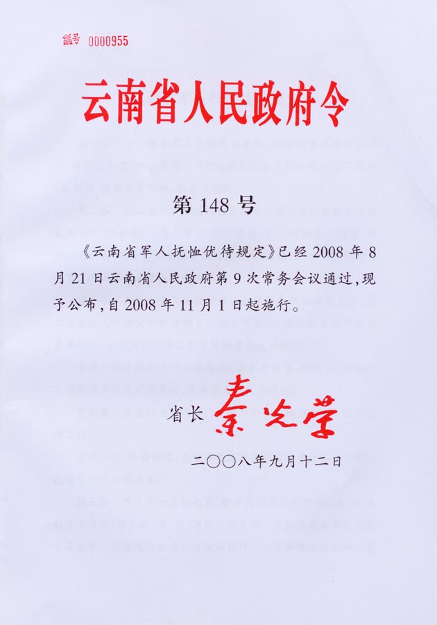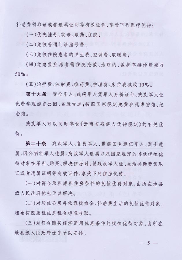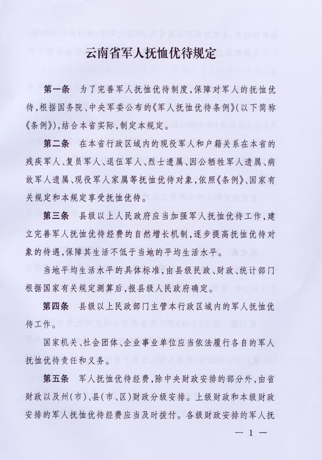 云南省军人抚恤优待规定